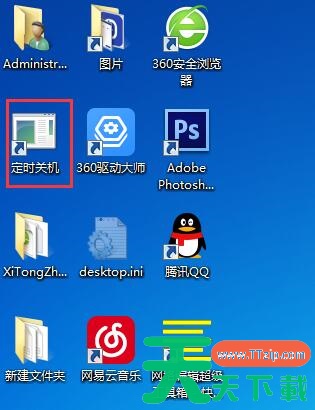 4、 确后以后。会在显示一个【关机】的快捷方式。如果要定时18:00关机就双击一下【关机】。