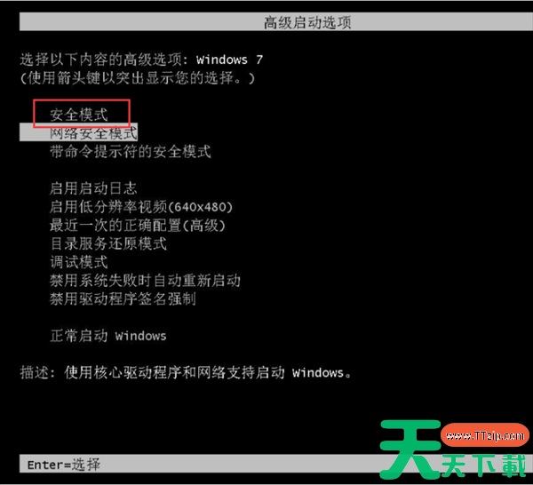 1、首先开机自检过后,马上按下F8键,使用方向键选择安全模式,敲击回车即可。
