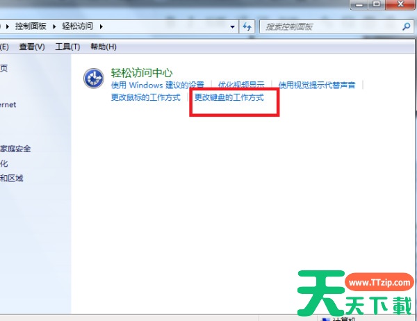 3、在新跳出的页面,找到【更改键盘的工作方式】并点击。