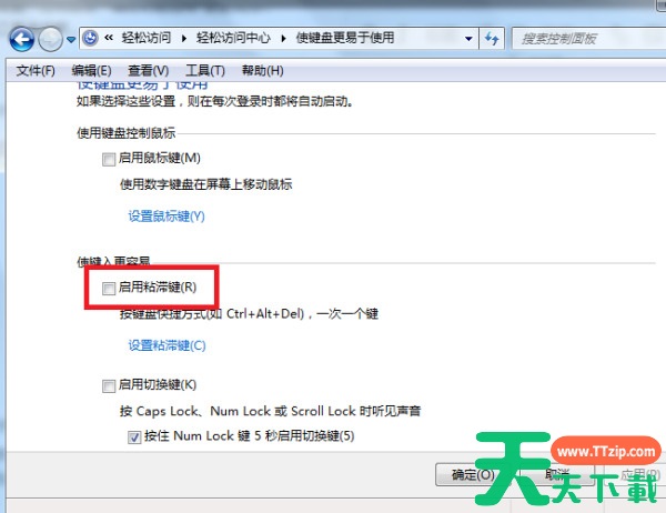 5、这时候Win7系统中的粘滞键功能就被关闭取消了。