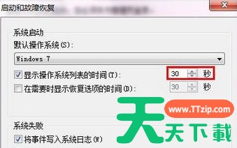 4、最后在弹出来的窗口中,在“显示操作系统列表的时间”更改为你想要设置的时间,比如20秒、15秒等,然后单击确定按钮保存退出就可以了。