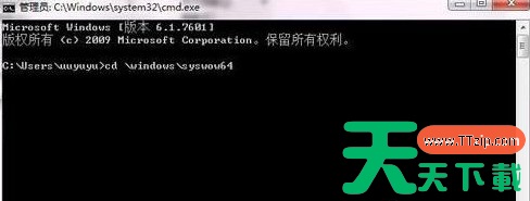 2、在打开的命令提示符里输入“cd windowssyswow64”,这个命令是将目录设置到syswow64这个文件夹,之后运行的命令就会在这个文件夹内找文件,输入后按回车,如下图所示。