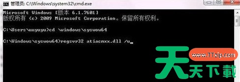 3、输入“regsvr32 atiacmxx.dll /u”按回车即可,如下图所示。