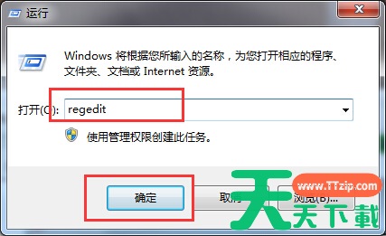 2、在运行文本框输入【regedit】点击确定,进入注册表编辑器界面;