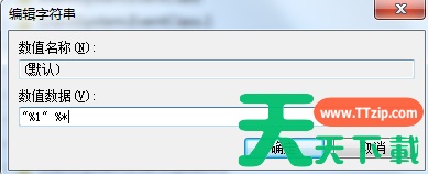 4、在右方找到默认值,将其值更改为【“%1” %*】,点击保存,重启电脑。
