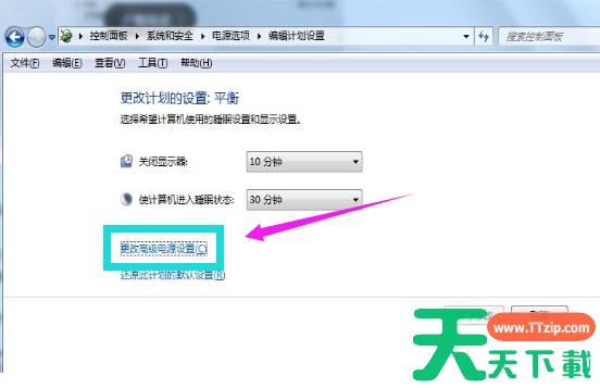 3、选择【更改高级电源设置(C)】进入设置界面。