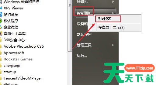 1、点击桌面左下角的开始菜单,找到控制面板,并点击控制面板进入界面。