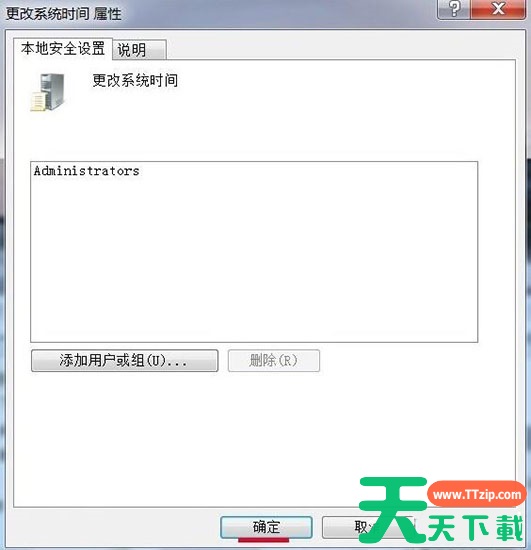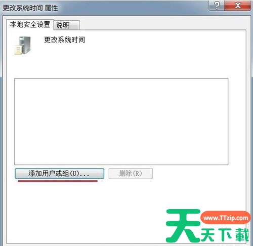 4、在打开的更改系统时间属性窗口,我们点击:添加用户或组(U)。