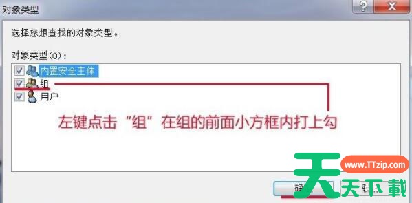 6、我们在对象类型窗口的对象类型(O)栏内,左键点击“组”,在组前面的小方框打上勾,再点击:确定。