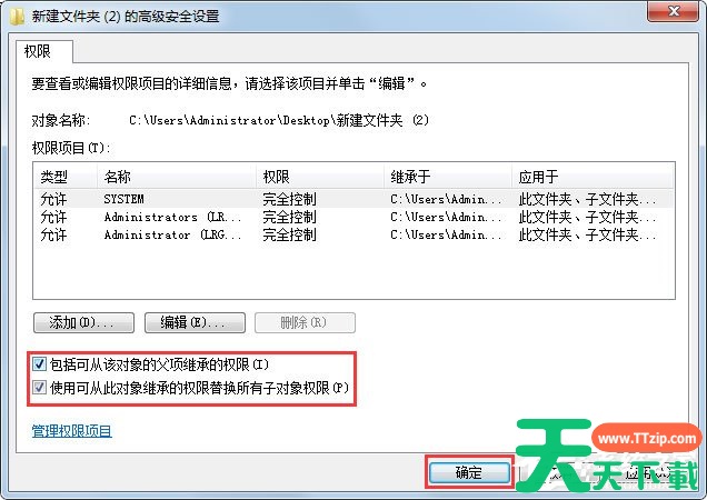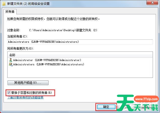 7、勾选“替换子容器和对象的所有者”选项并单击“确定”按钮;