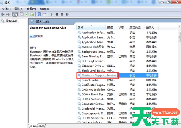 2、然后在弹出的“服务”界面中,点击“Bluetooth Support Service”进入其属性界面。
