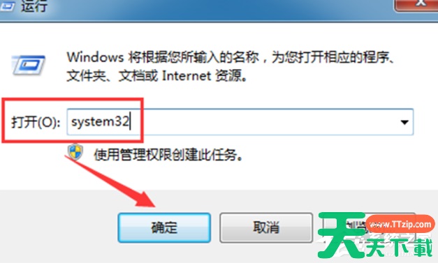 1、利用快捷键“Windows +R”打开“运行”界面,然后在界面中输入“system32”,点击“确定”就可以了。