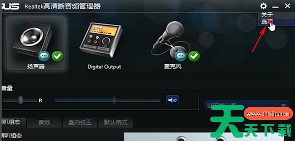 5、进入后选择音频管理器,点击设置,选择选项。