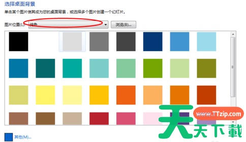 3、在桌面背景窗口里,点击图片位置下拉菜单,选择“纯色”选项。
