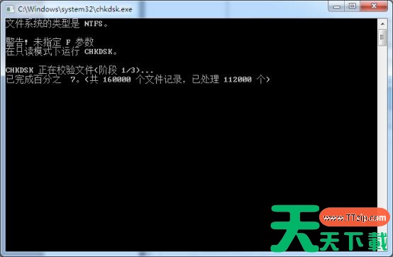 7、Chkdsk磁盘检查:输入命令“chkdsk”后按回车,界面如下: