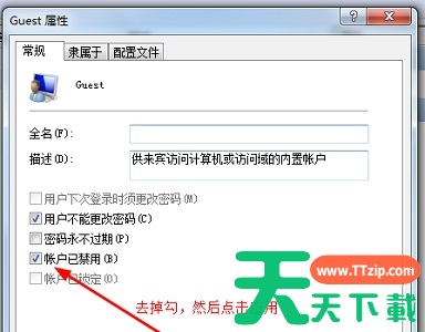 6、双击打开文件,将图示位置的“账户已禁用”取消勾选即可。