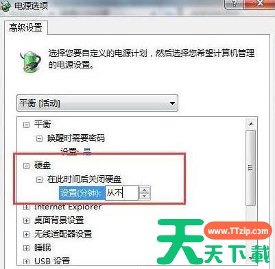 近期有部分Win7用户反映自己的电脑在使用的过程中,硬盘会自动关闭,这是什么原因?发生这个问题应该是电脑的高级电源设置进行了节能设置导致的。对于这种情况我们应该如何解决呢?下面就来看看天天下载Ttzip带来的详细的解决教程吧。