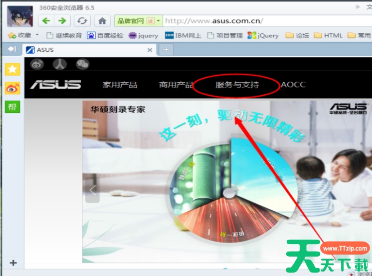 4 、进入华硕笔记本的中文官网,点击【服务与支持 】菜单。
