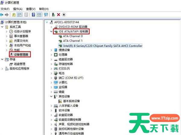 1、右键此电脑,点击管理,打开设备管理器,找到“IDE ATA/ATAPI控制器”。