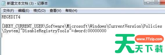 [HKEY_CURRENT_USERSoftwareMicrosoftWindowsCurrentVersionPoliciesSystem]“DisableRegistryTools”=dword:00000000