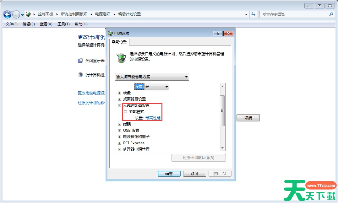 最后,将【Internet Explorer】和【无线适配器】设置为【最高性能】即可。