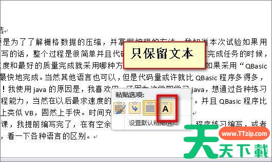 5、将复制的内容粘贴到新创建的空白文档中!在此处注意:粘贴后,选择[仅保留文本],这样将删除所有文本格式,如下图所示: