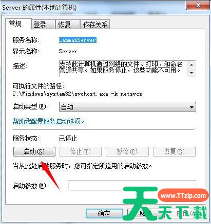 3、在弹出的服务对话框中,找到[服务器]服务,然后双击进入设置对话框;如图所示: