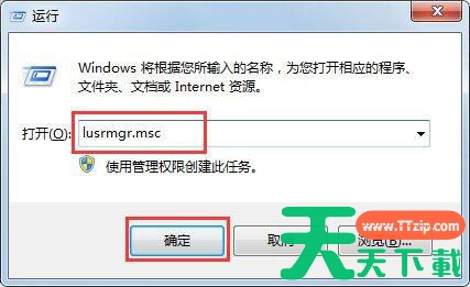 6、此时,解决问题,运行该选项,输入lusrmgr.msc命令,单击OK,进入本地帐户组;如图所示: