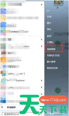 1、登录电脑系统后,在桌面左下角点击开始图标并在弹出对话框中选择右侧的“控制面板”打开。