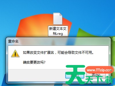 4、把txt文本后缀改成.reg,这时候会出现提示,点击确认即可;