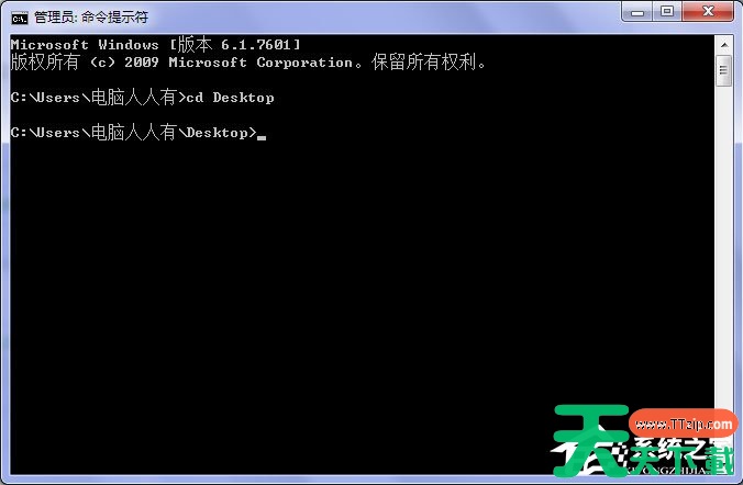 5、然后再使用CD命令进入Desktop(桌面),注意两者之间有空格(按回车执行);