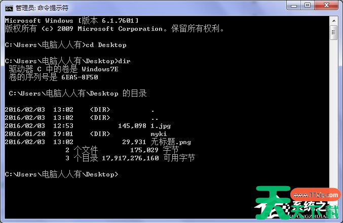 4、先在命令提示符中输入(按回车执行),确保进入了当前账户文件夹;
