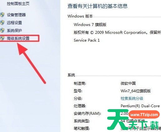 2、点击属性之后,系统会自动弹出来一个边框,我们在控制面板主页下面看到高级系统设置,点击一下。