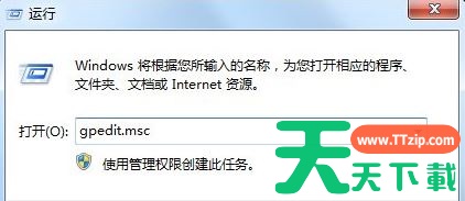 3、找到并打开运行选项后,我们这时在输入框中输入“gpedit.msc”,输入完毕后点击确定。
