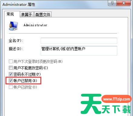 其实我们只需要将被禁用的Administrator账户前面的勾取消掉即可解决Administrator不见了的问题。
