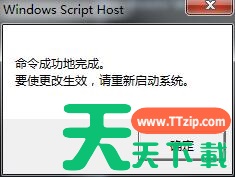 第三步、我们看到桌面弹出命令成功地完成对话框,代表已经激活,重启系统就完成了。