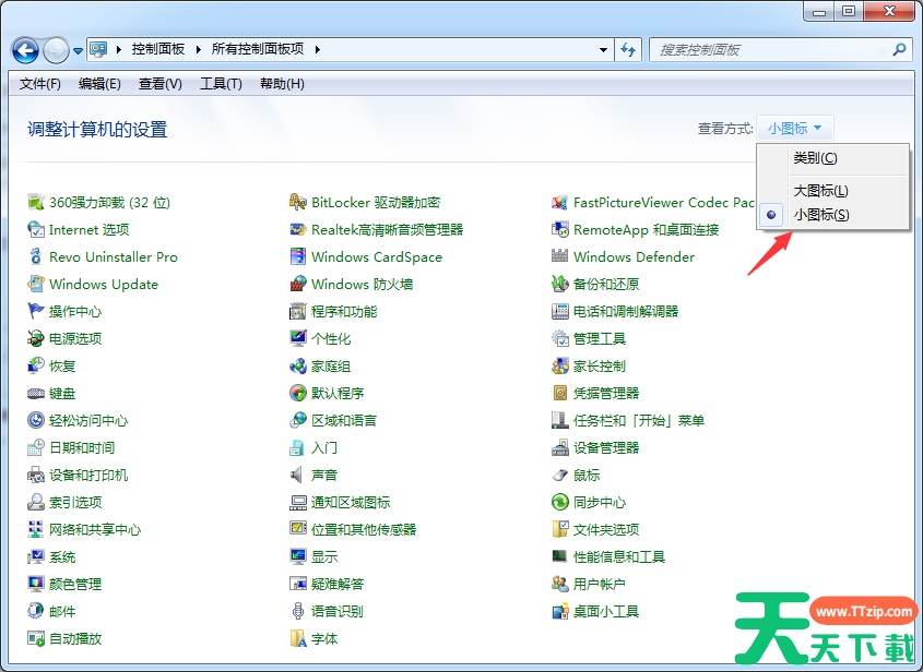 1、打开 Windows 的控制面板,在查看方式中更改为小图标。