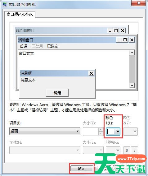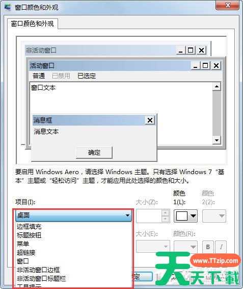 4、如果要设置特定项目的颜色可以在窗口颜色和外观窗口上面点击高级外观设置;