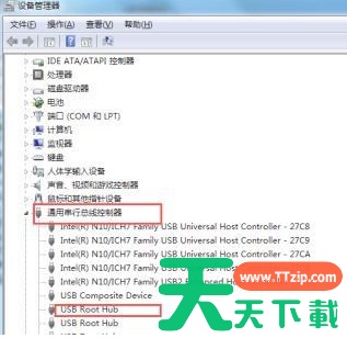 3、打开设备管理器窗口后,依次找到“通用串行总线控制器”、“UsB Root Hub”,右键单击“UsB Root Hub”;