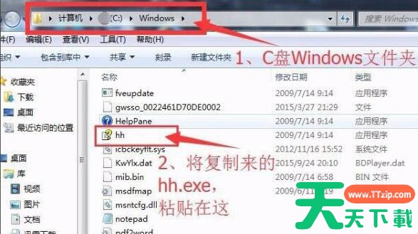 3、你可能是把无意间删了C:Windowshh.exe,到别人电脑的C盘Windows文件夹里copy一个hh.exe文件 ,放到自己电脑C盘Windows文件夹里。