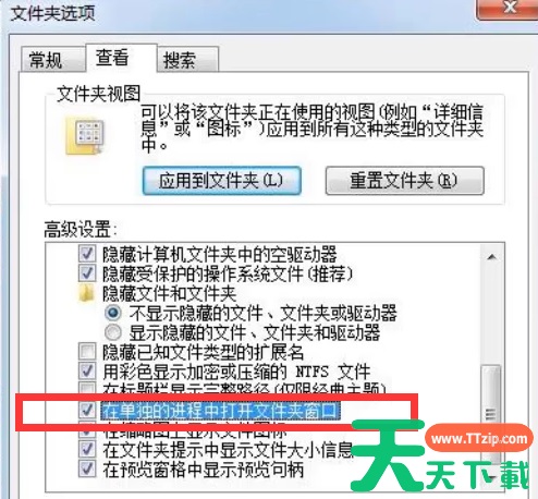 1、在文件夹选项中【查看】在单独的进程打开文件夹窗口选项【勾选】。