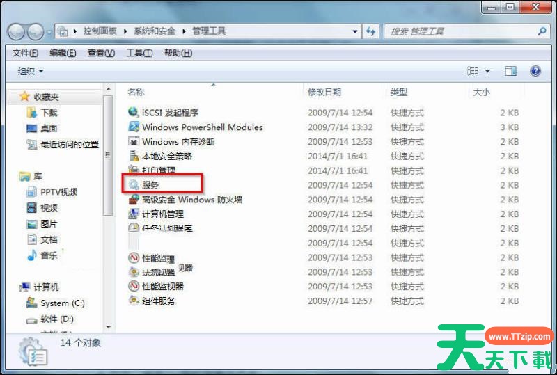 3、在“管理工具”界面,找到“服务”并双击,即可打开服务界面。
