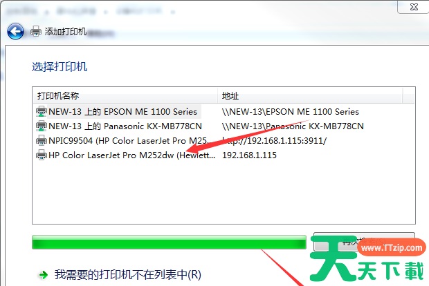 4、然后Win7`旗舰版系统会自动搜索打印机和驱动,然后点击您的打印机型号,进入下一步。