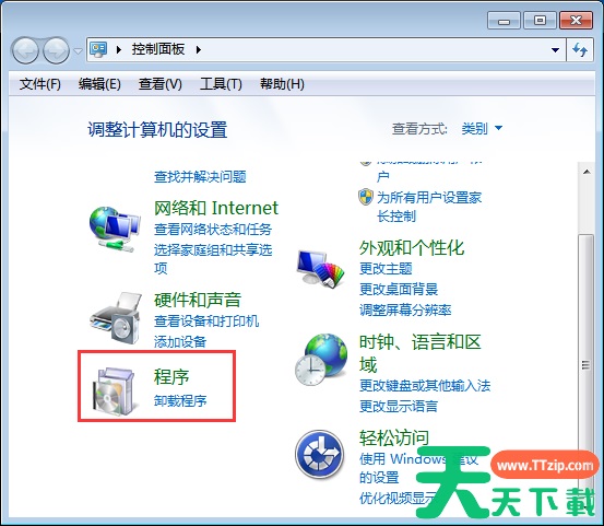 2、在控制面板中,选择“程序”。