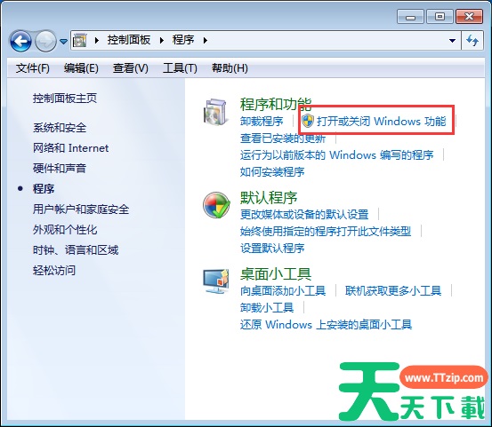 3、在程序和函数中,我们发现打开或关闭了Windows函数。