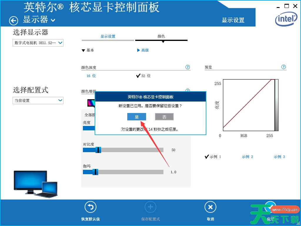 最后,待“新设置已应用,是否要保留这些设置”的提示弹出后,按下“是”按钮即可。