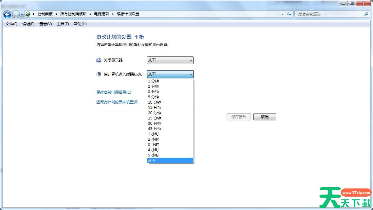 很多电脑都会自动锁屏,当你因为一些事情需要离开时,很长一段时间不碰电脑,电脑就会变成自动锁屏的状态,那么怎么取消呢?针对这一问题,本篇以win7系统为例,为大家带来win7系统取消自动锁屏的方法,操作简单易上手,分享给大家。 详细如下: 1、双击打开“控制面板”,点击“电源选项”; 2、点击“更改计算机睡眠时间”; 3、在“使计算机进入睡眠状态”选择“从不”; 4、点击“保存修改”即可。 以上就是win7系统如何取消自动锁屏的设置方法,这样就不用一直重复输入密码了。 除特别注明外,本站所有文章均为 天天下载 原创,转载请注明出处来自 https://www.ttzip.com/213817.html