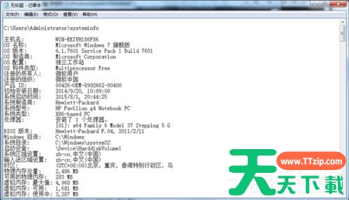 Win7系统如何导出systeminfo信息?我们使用命令systeminfo可以查看系统的硬件配置,网卡驱动等信息。那么在我们查看完这些信息后如何将这些信息导出来呢?带着这份困惑,我们一起来看看下面这篇天天下载Ttzip精心整理的详细操作方法吧,希望对你有所帮助哦。