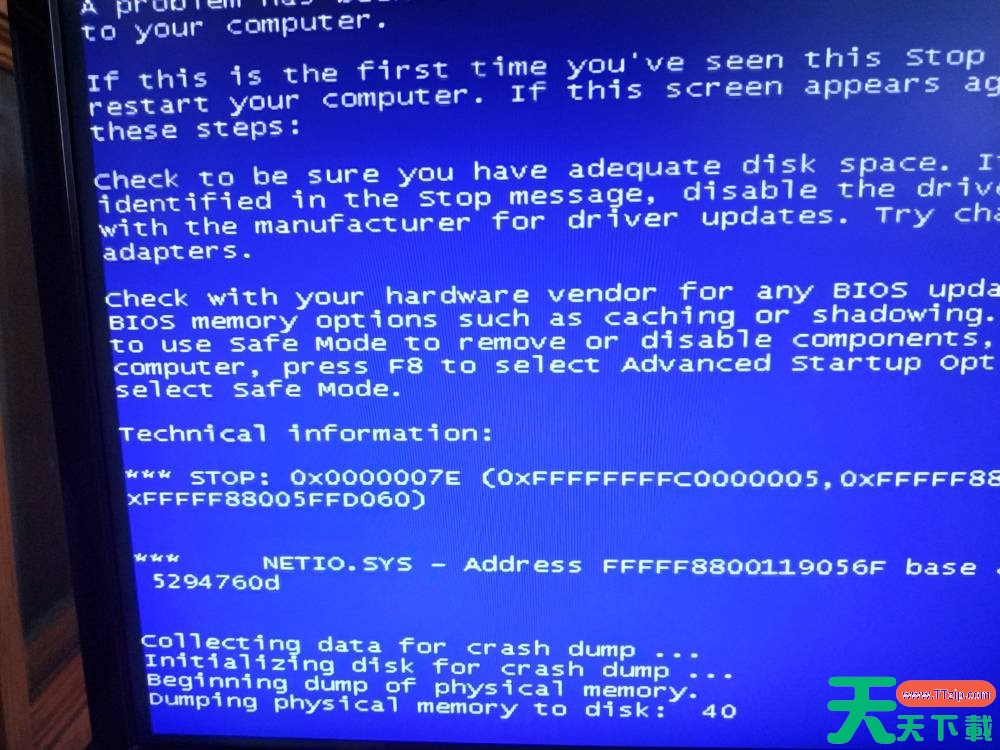 有部分Win7用户在电脑的使用中电脑蓝屏了并出现代码netio.sys,遇到这种情况应该如何解决呢?带着这份困惑,我们一起来看看下面这篇天天下载Ttzip精心整理的详细解决教程吧,希望对你有所帮助哦。