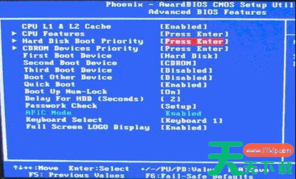 2、高级BIOS设置(Advanced BIOS Features)界面,首先选择硬盘启动优先级:Hard Disk Boot Priority。